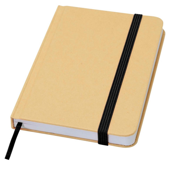 Das Reed A6 Hardcover Notizbuch aus Recyclingkarton mit abgerundeten Ecken ist nicht nur ein unentbehrlicher Bürohelfer, sondern auch eine großartige Möglichkeit, für Ihre Marke zu werben. Das Notizbuch umfasst 96 Blatt, blanko, aus 70 g/m 2 Papier mit einem weichen Einband. Mit elastischem Verschluss und Lesebändchen.